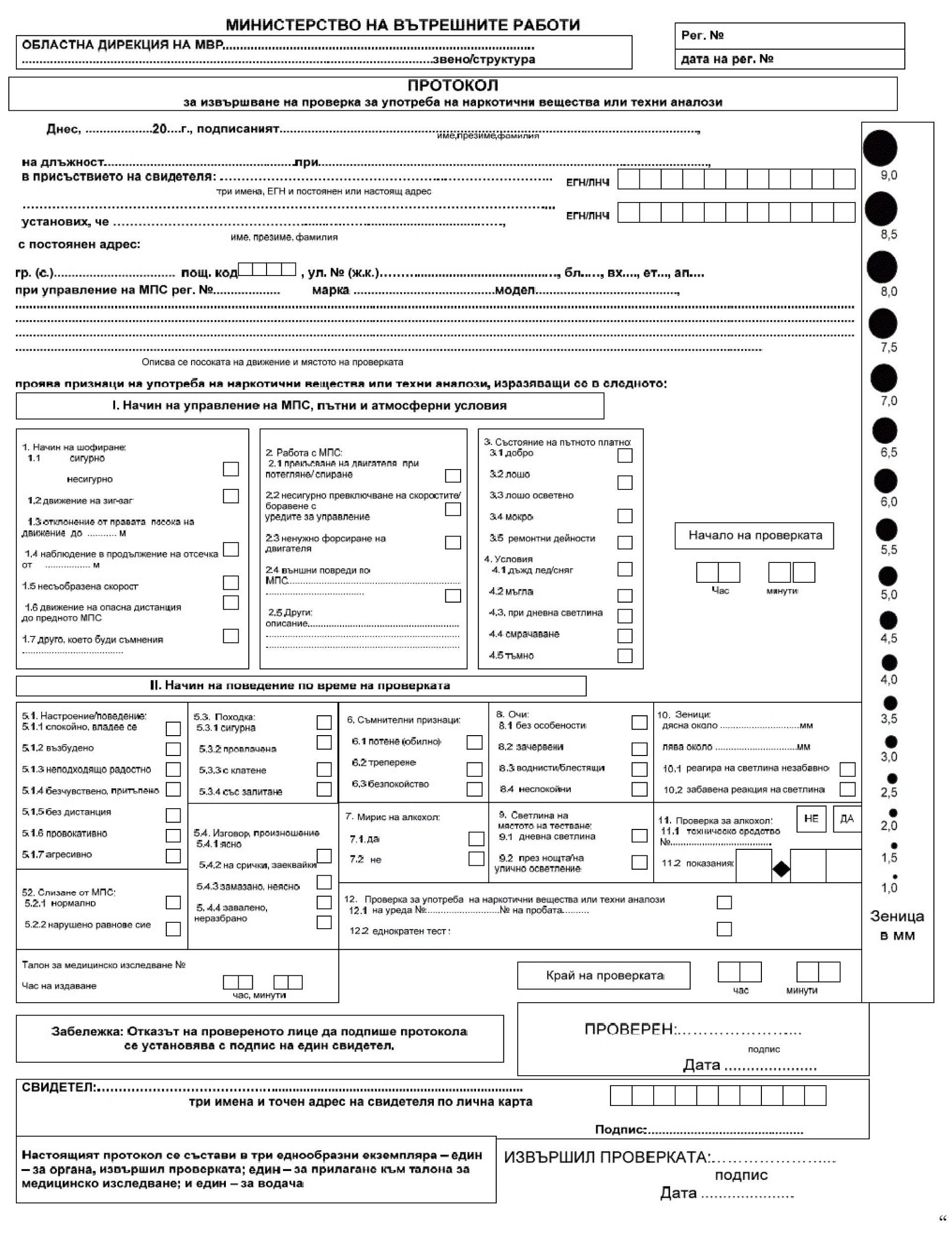 ПРОТОКОЛ ЗА МЕДИЦИНСКО ИЗСЛЕДВАНЕ И ВЗЕМАНЕ НА БИОЛОГИЧНИ ПРОБИ ЗА КОНЦЕНТРАЦИЯ НА АЛКОХОЛ В КРЪВТА И/ИЛИ УПОТРЕБАТА НА НАРКОТИЧНИ ВЕЩЕСТВА ИЛИ ТЕХНИ АНАЛОЗИ