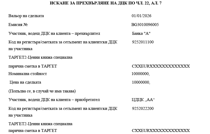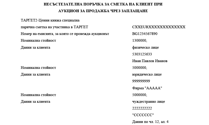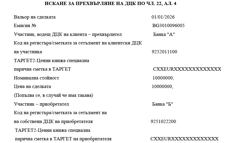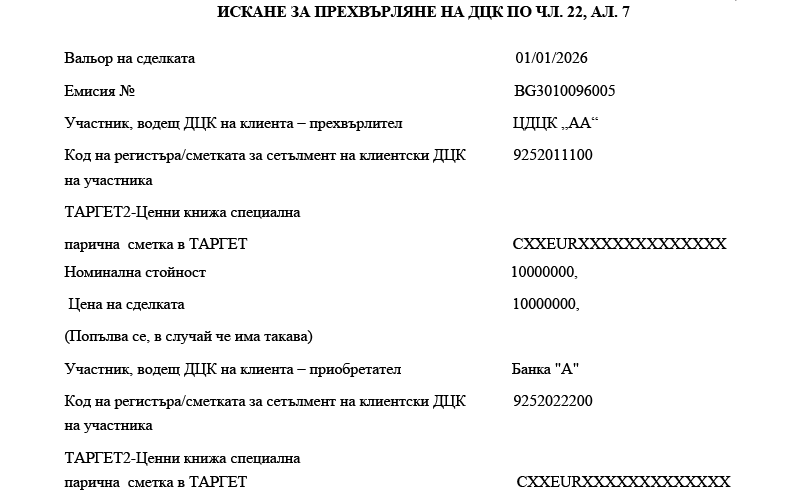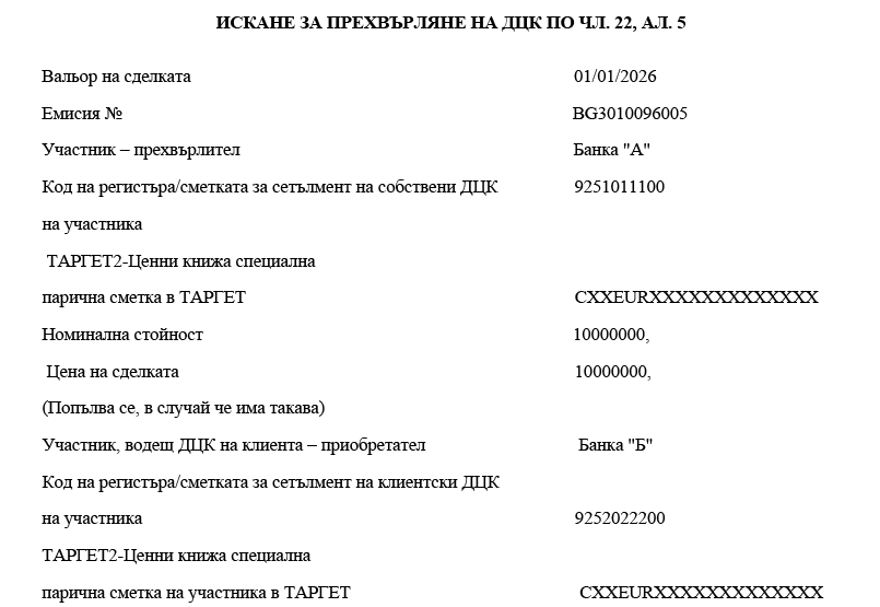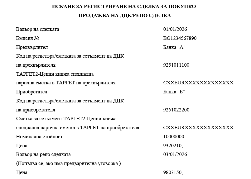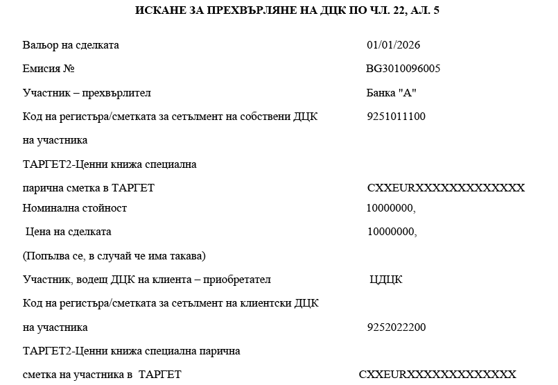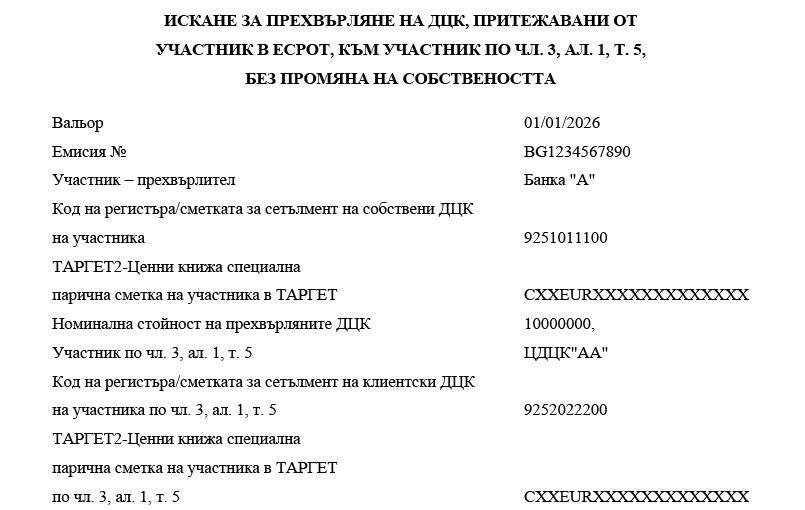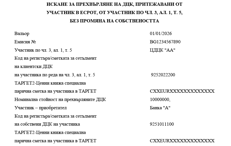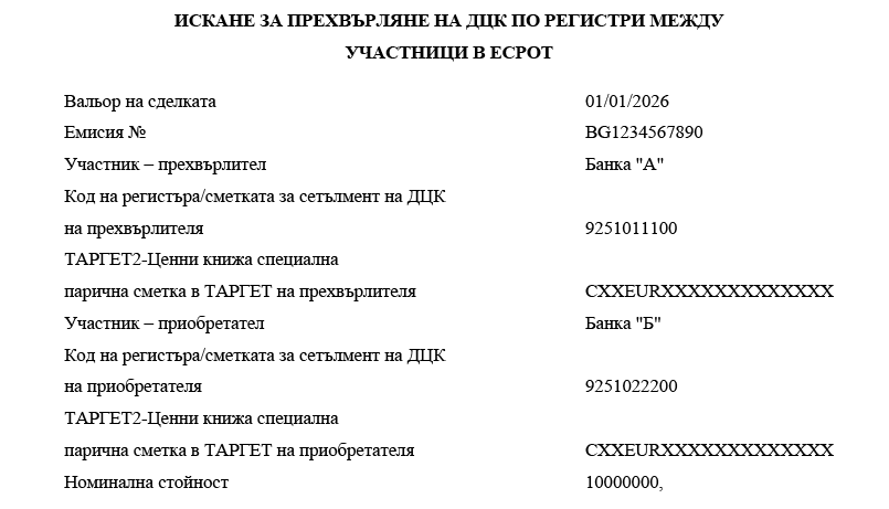 1. участниците банки посочват номера на ТАРГЕТ2-Ценни книжа специална парична сметка в ТАРГЕТ-БНБ или в друг системен компонент на ТАРГЕТ;