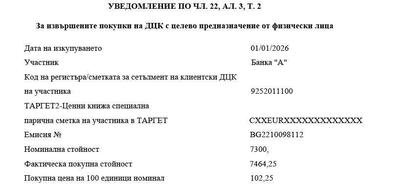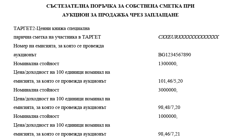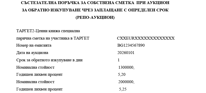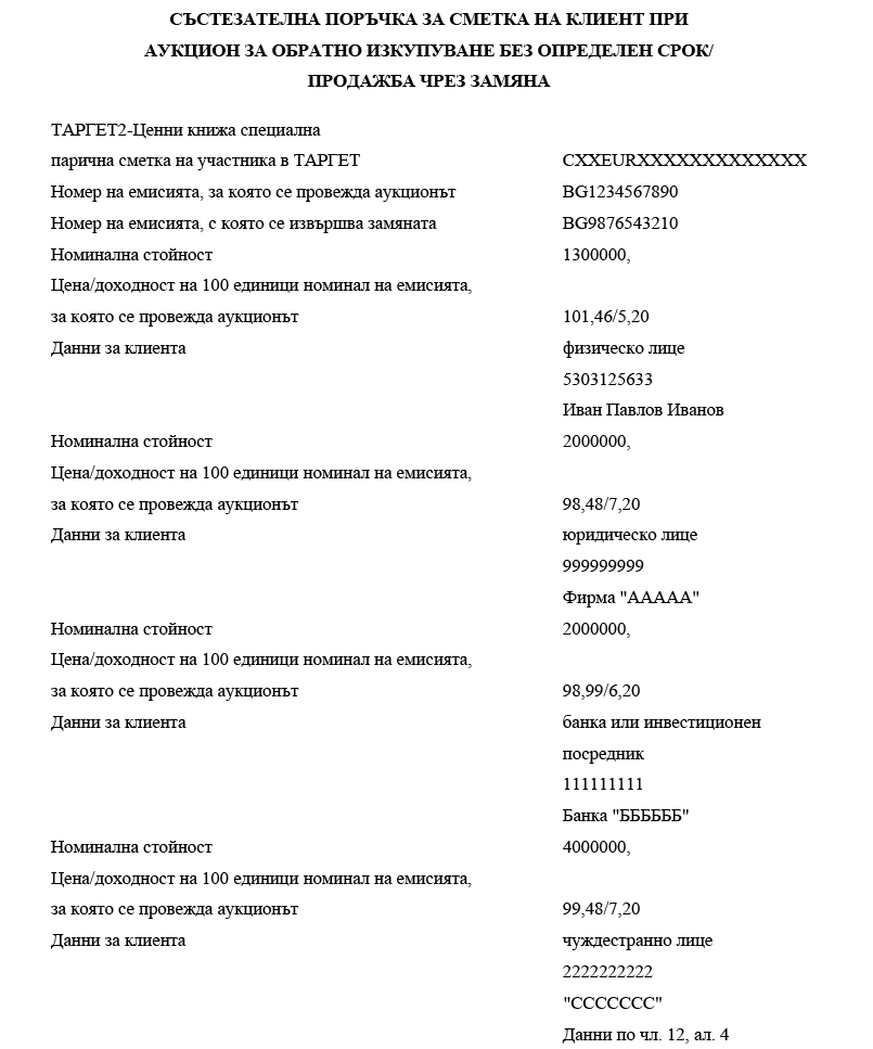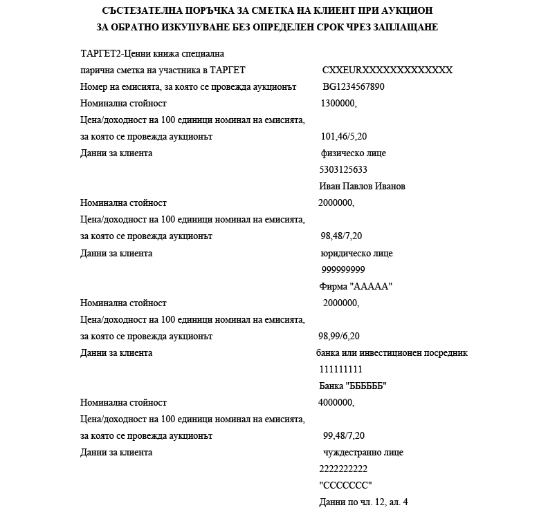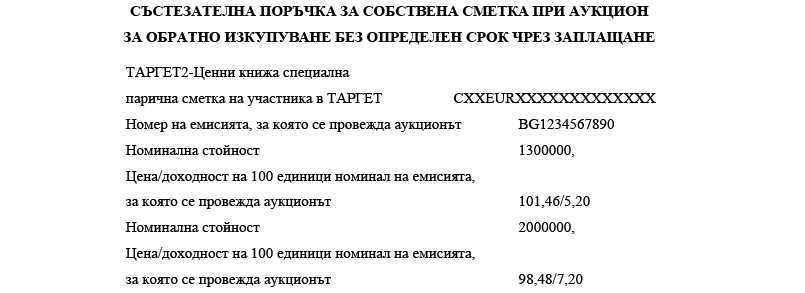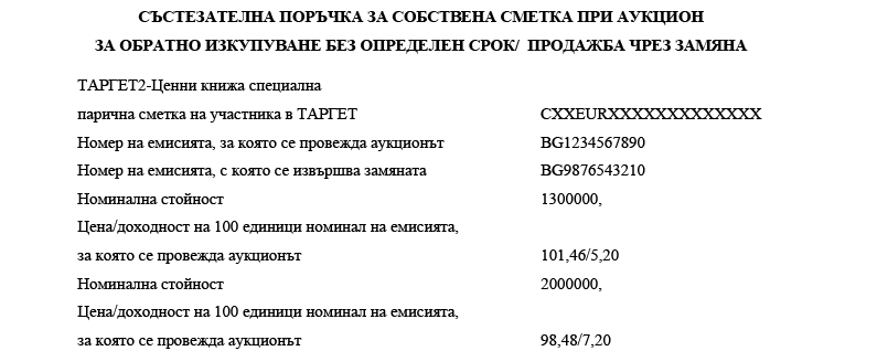 3. номиналната стойност на ДЦК, заявени за обратно изкупуване (цифром);