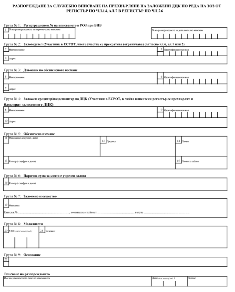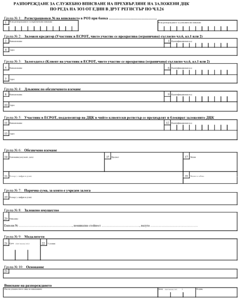 Приложение № 26 към чл. 22, ал. 6