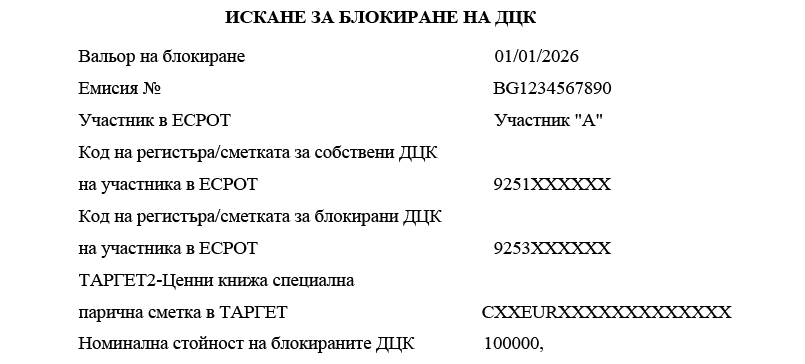 3. „Блокиране“ е забрана за разпореждане с ДЦК.