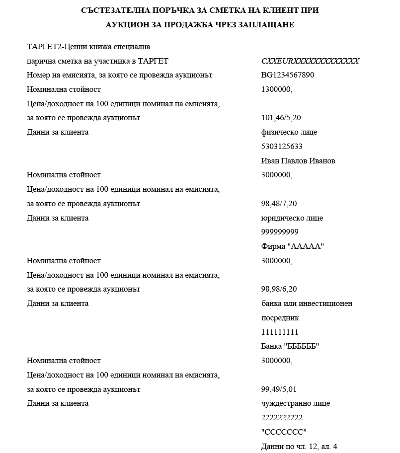 (3) В случай че поръчката се заявява за сметка на клиент на първичния дилър, освен реквизитите по ал. 2 тя трябва да съдържа данни за клиента, за чиято сметка се заявява поръчката: