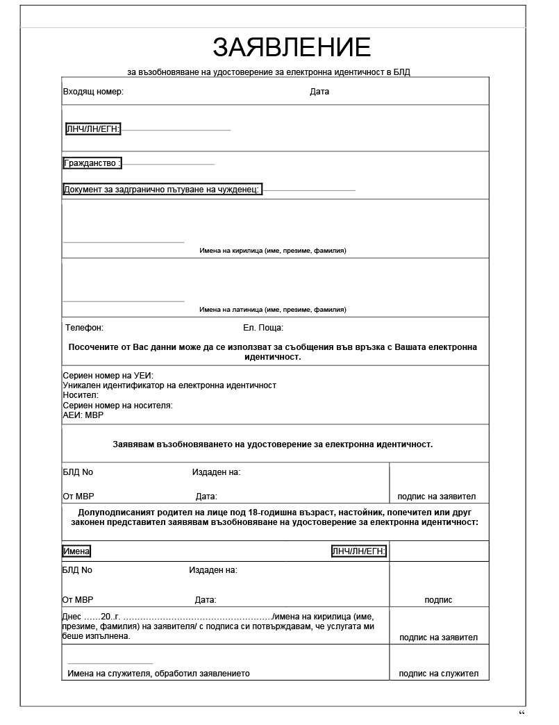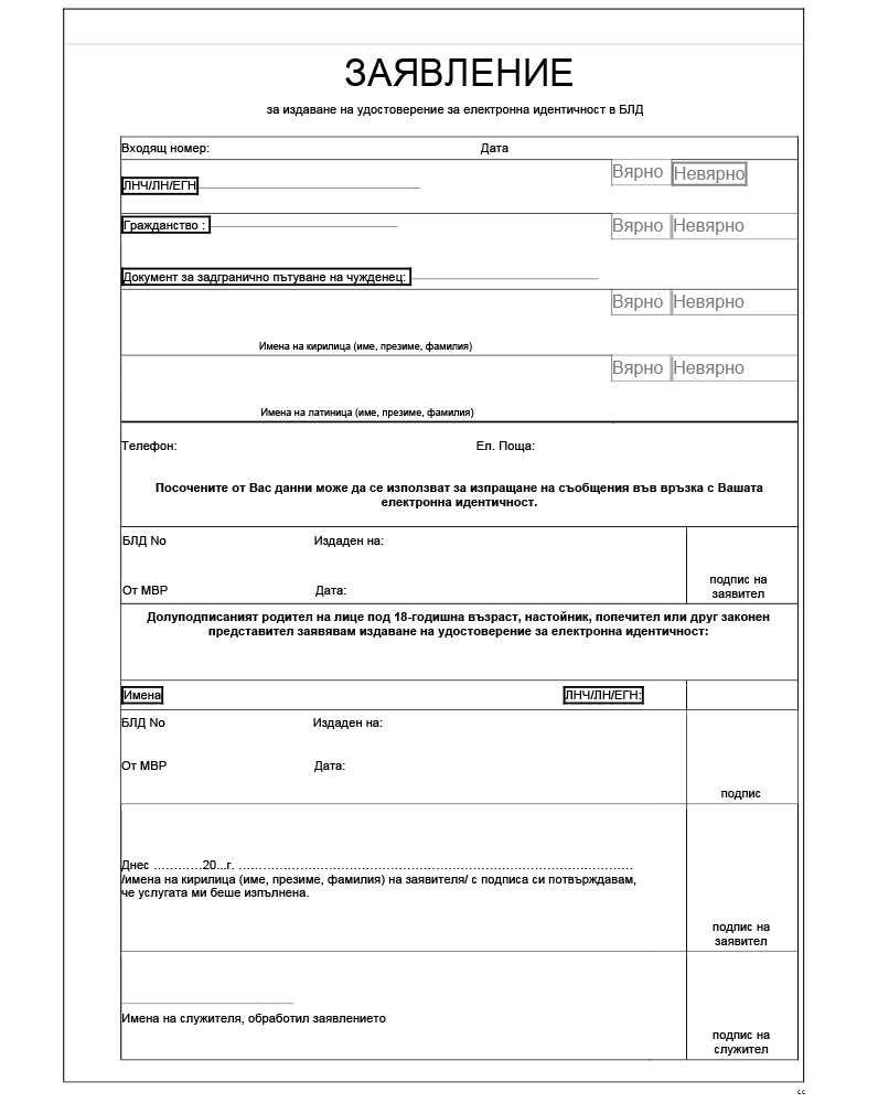 „(6) Заявленията по образец съгласно приложения № 9, 10, 11 и 12 се попълват с данни от Централизираната система за електронна идентификация (ЦСЕИ) и се предоставят на заявителя за установяване съответствие на данните.