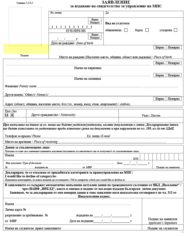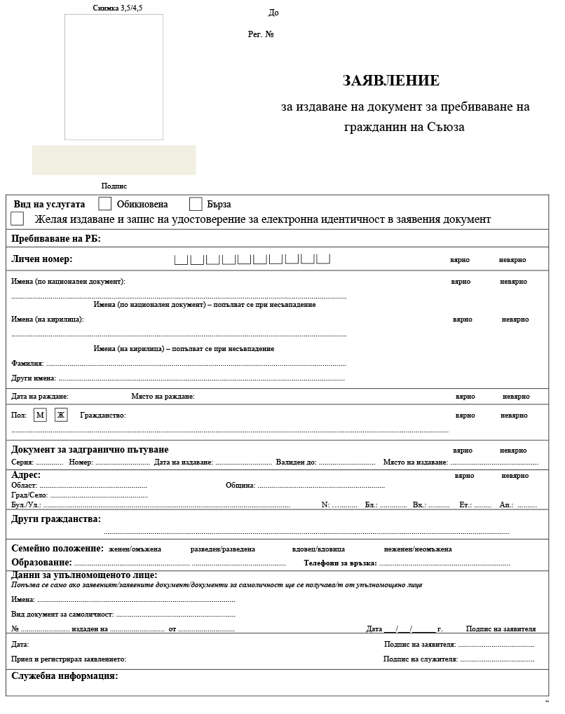 „1. чужденците с разрешено продължително пребиваване в Република България се явяват лично в ДМ – МВР или в звената „Миграция“ при ОДМВР по настоящ адрес; данните от заявленията се обработват в съответните информационни фондове от ДМ – МВР или от звената „Миграция“ при ОДМВР; независимо от настоящия адрес на чужденеца заявления за издаване на документи за експресна услуга могат да се подават и в ДМ – МВР; документите по приети от ДМ – МВР или от звената „Миграция“ при ОДМВР заявления се персонализират от ДБДС – МВР;