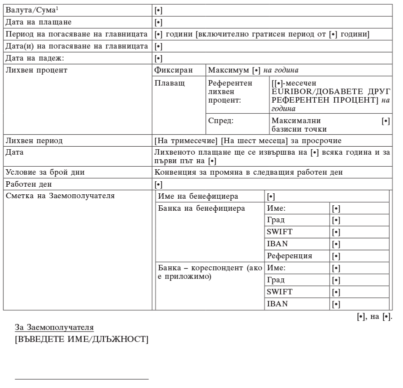 „Сума на заема“ означава сумата, посочена в подточка .