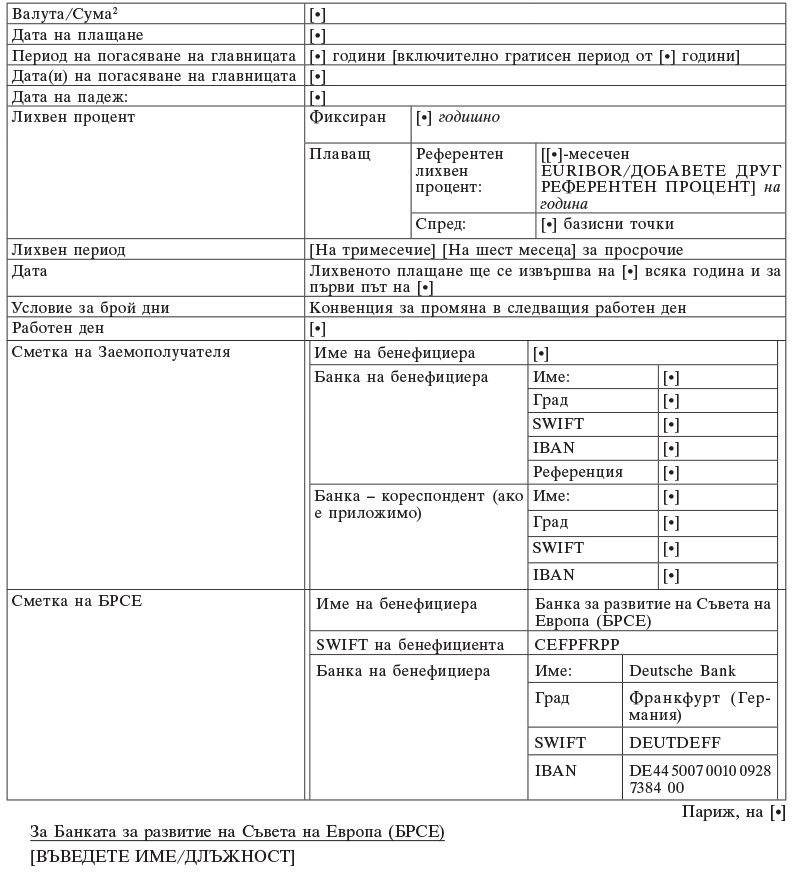 РЕПУБЛИКА БЪЛГАРИЯ (наричана по-нататък „Заемополучател“ и заедно с БРСЕ, „Страните“ и всяка от тях „Страната“), от друга страна,