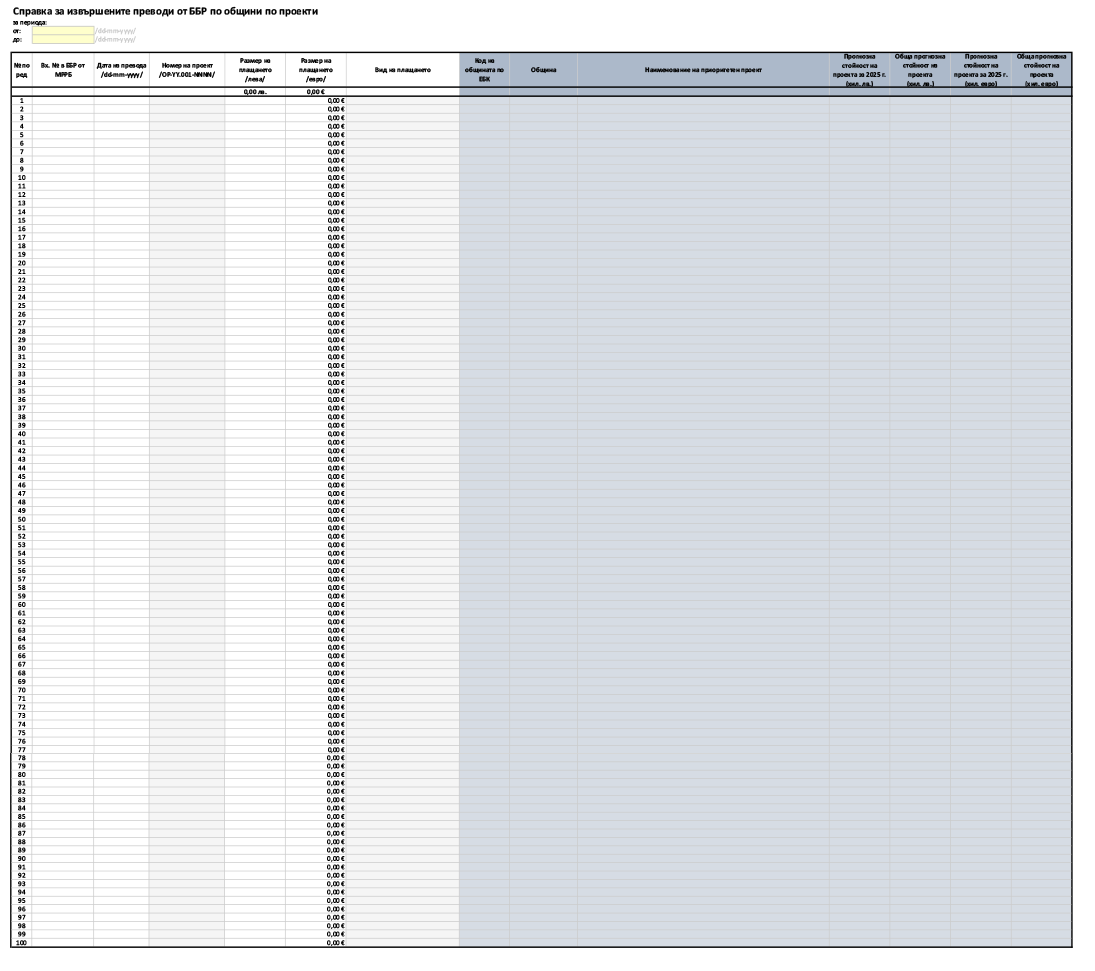 (2) Българската банка за развитие предоставя на Министерството на финансите и на МРРБ информация на ежеседмична база, всеки понеделник за предходната седмица, за размера на предоставените средства по общини и по проекти по образец съгласно приложение № 10.