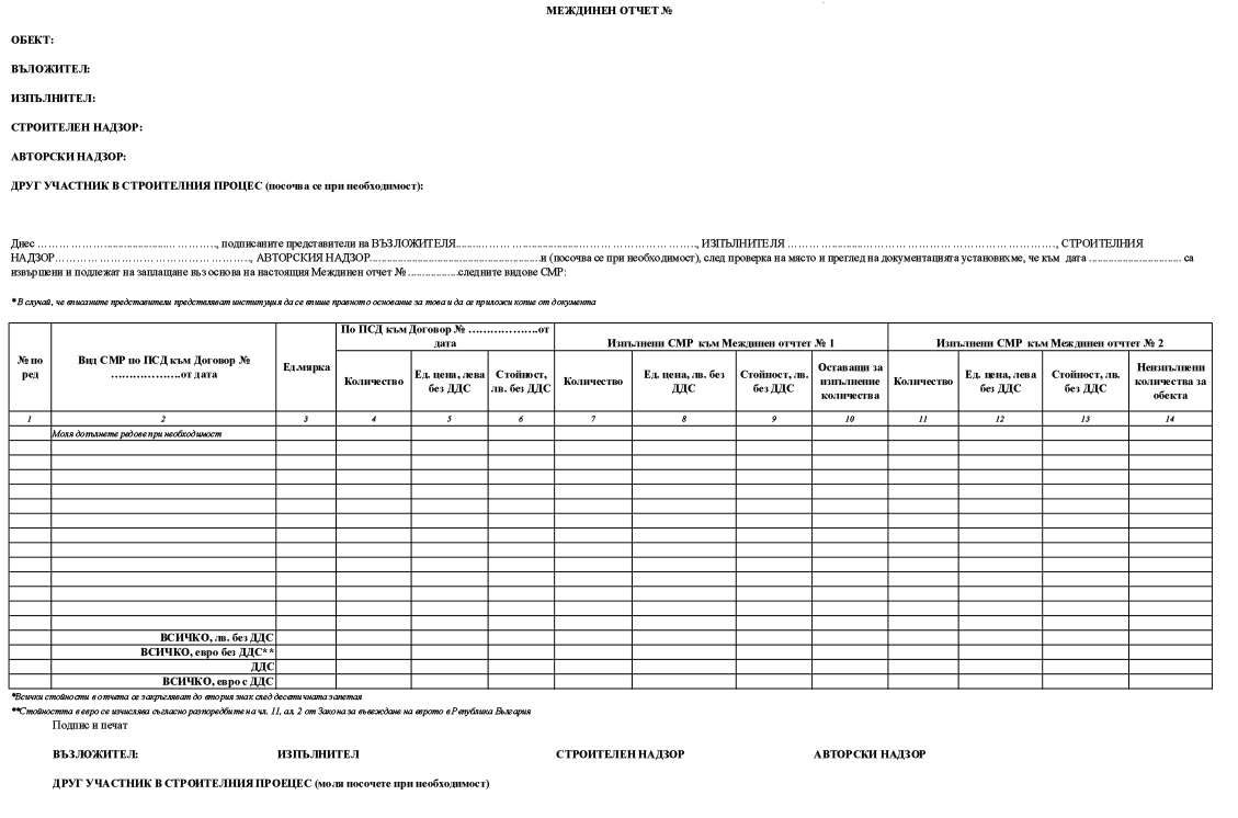 2. се извършват междинните плащания, всяко в размер 35 на сто от предвидените разходи за СМР, съгласно предложената цена и количествено-стойностна сметка, към сключения/сключените договор/договори с изпълнител/изпълнители, текущо на базата на достигнат съответен етап от фактически извършени и приети дейности; първото междинно плащане се заявява от общината при фактически извършени предвидени дейности, представляващи 25 на сто от цялото СМР; следващо междинно плащане се заявява от общината при фактически извършени предвидени дейности, представляващи 50 на сто от всички предвидени СМР; към тези искания за плащане по образец – приложение № 1, общините прилагат междинни отчети/актове, удостоверяващи съответния процент на изпълнение на СМР – по образец съгласно приложение № 2, подписани от всички участници в строителния процес; междинните плащания се извършват текущо след получаване на искането в МРРБ, като се прилагат и всички други документи, необходими за извършване на междинни плащания, предвидени в споразумението;