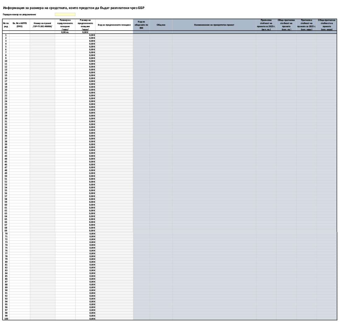 Чл. 7. (1) Преди изпращане на уведомлението по чл. 3, ал. 7 до Българската банка за развитие МРРБ изпраща на Министерството на финансите обобщена информация за размера на средствата, които предстои да бъдат разплатени чрез банката за всяко предстоящо плащане, по образец съгласно приложение № 9. В случай на установено несъответствие, свързано с финансовата обоснованост на информацията, в едноседмичен срок Министерството на финансите уведомява МРРБ за същото. Уведомлението до ББР се изпраща от МРРБ след отстраняване на несъответствието и при получаване на потвърждение от МФ.