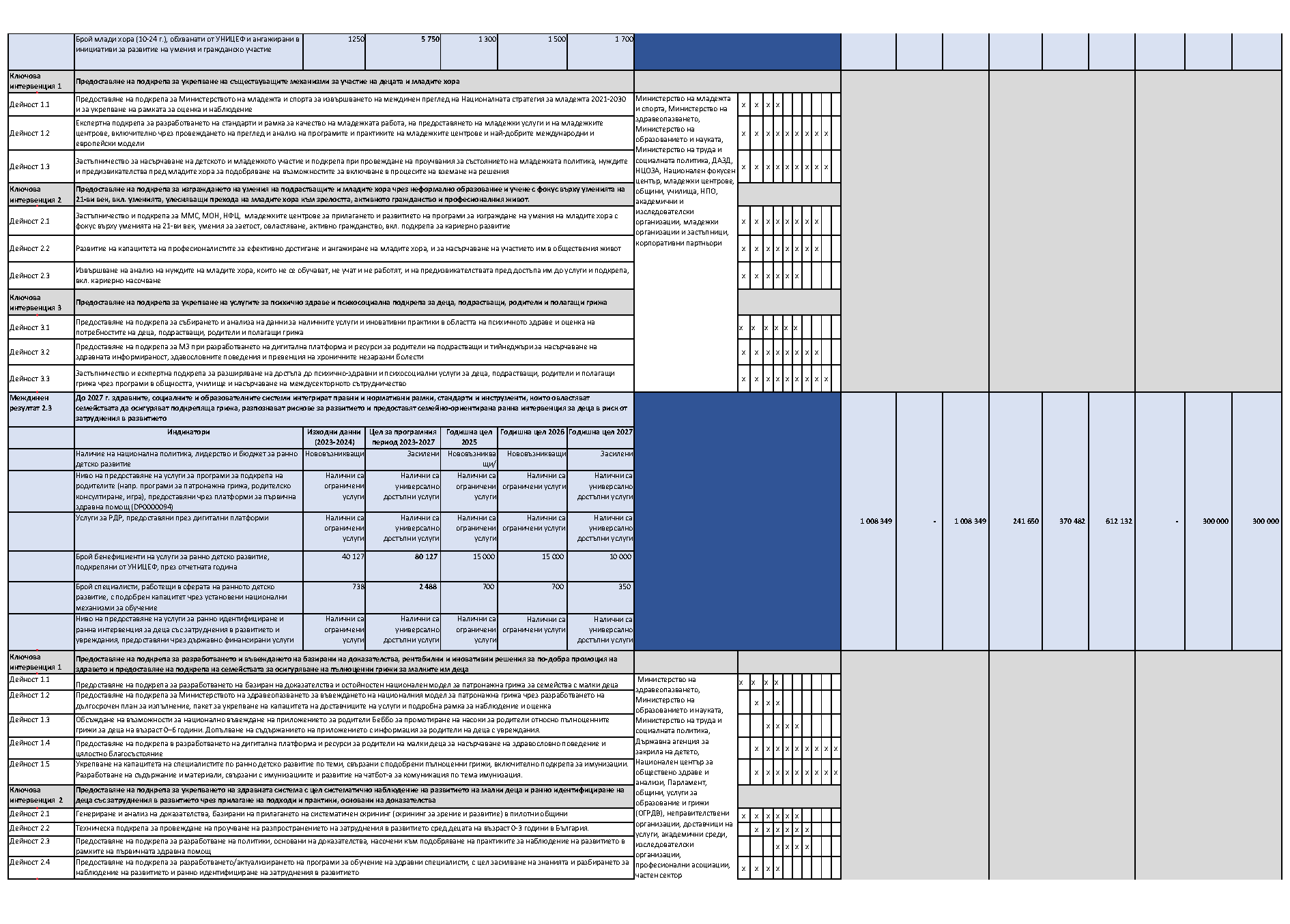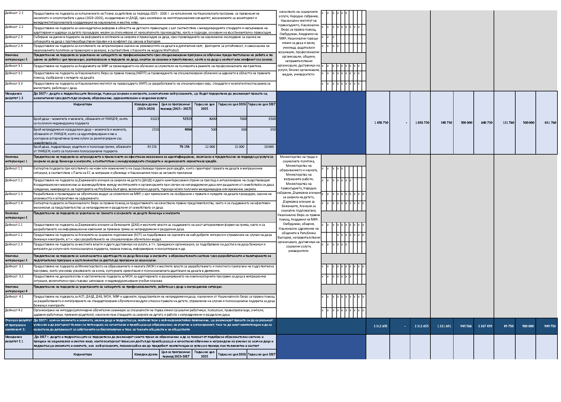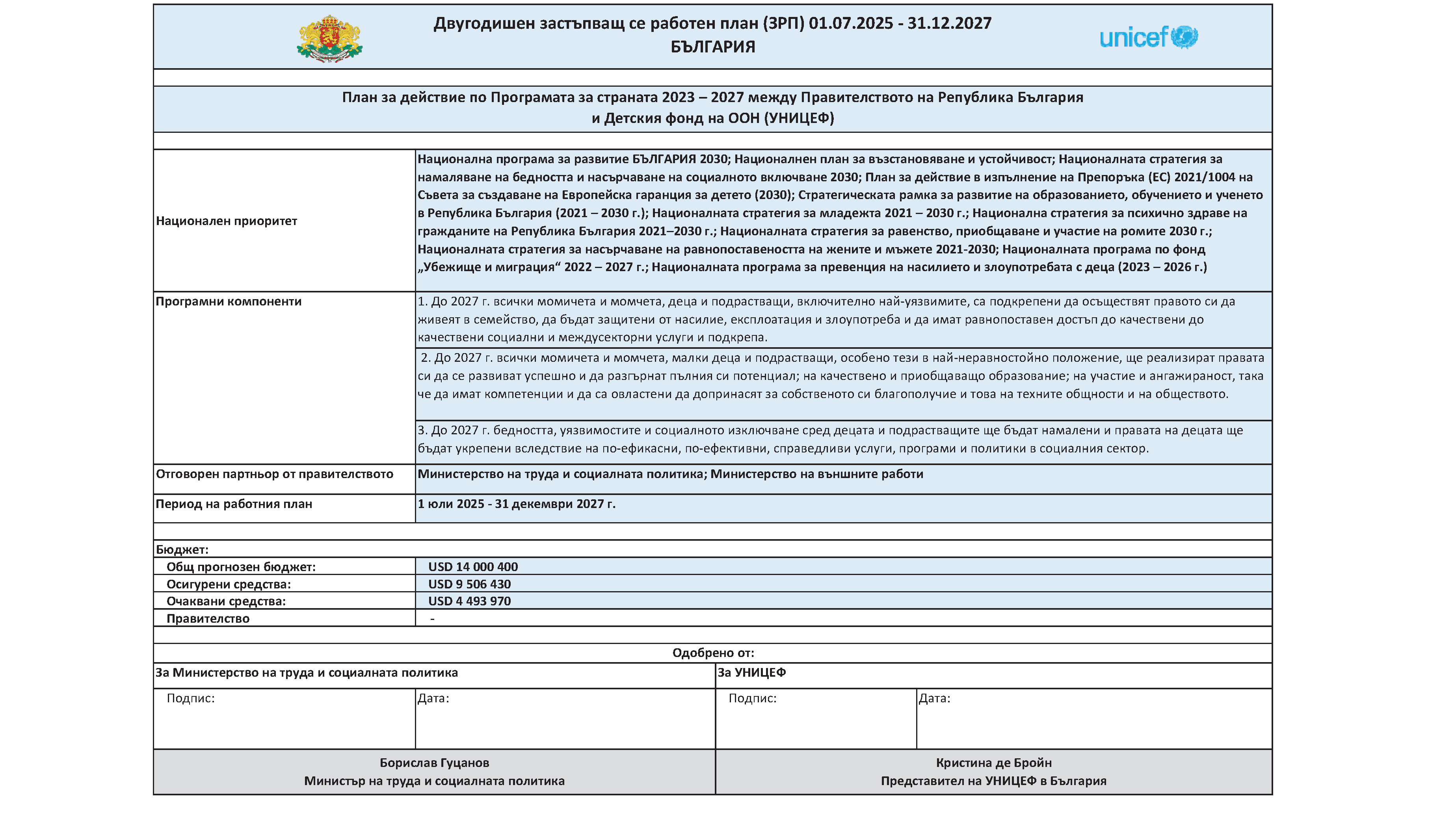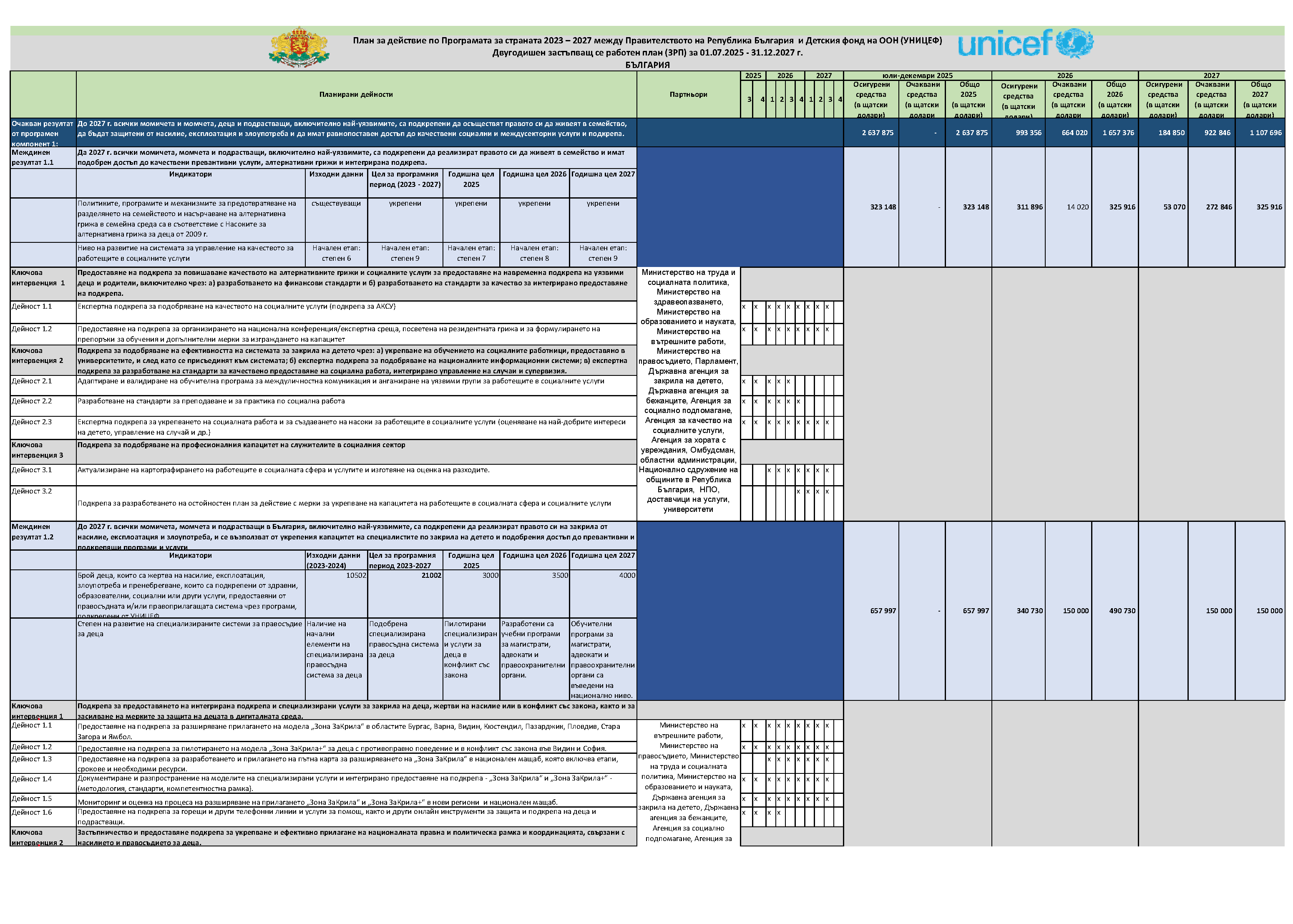 Двугодишен застъпващ се работен план 01.07.2025 г. – 31.12.2027 г. към Плана за действие по Програмата за страната 2023 – 2027 г. между Правителството на Република България и Фонда за децата на ООН (УНИЦЕФ)